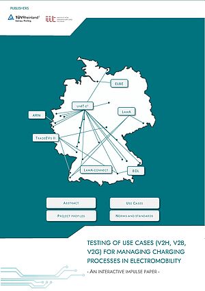 The structuring of the use cases of the projects according to the current classification (Vehicle2Business (V2B), Vehicle2Grid (V2G), and others) as well as according to their spatial environment (home, workplace, etc.) is visualized. The use cases are also divided into unidirectional and bidirectional charging and are assigned to their functions between market-based price control and up to emergency control due to local power grid congestions. The standardization and regulatory requirements are identified. Furthermore, the future requirements and challenges of controlled charging are formulated.