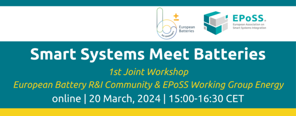 The European Battery R&I Community and EPoSS Working Group Energy cordially invite to their first common workshop “Smart Systems Meet Batteries” on 20 March, 2024, taking place online.